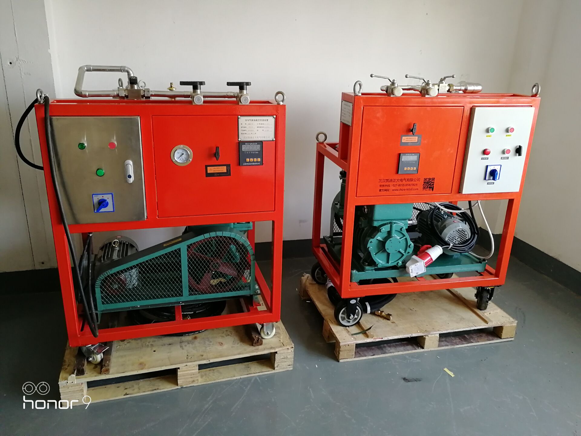 SF6氣體抽真空充氣裝置:KDQC-33抽氣速率≥45L/s;風冷手推移動式,前級真空泵(抽氣速率(54m3/h;)極限真空10(裝置極限)(Pa)功率2.2kW;)羅茨真空泵(抽氣速率70L/s;極限真空≤10Pa;功率0.75kW);電源三相五線制 3Φ 380V;總功率≤3kW;噪聲≤60dB(A);重量200kg;尺寸(長*寬*高)82 cm *55 cm *115cm