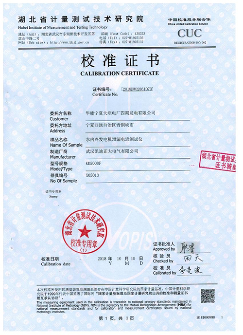 通過《直流數(shù)字電流表試行檢定規(guī)程》(JJG 598-1989)《泄漏電流測量儀(表)檢定規(guī)程》(JJG 843-1993),武漢凱迪正大電氣有限公司生產(chǎn)的水內(nèi)冷發(fā)電機(jī)泄漏電流測試儀:輸出電壓:80KV輸出電流:300mA輸出功率:24KW符合國家電力試驗(yàn)標(biāo)準(zhǔn),精度符合國家能源局發(fā)電機(jī)水內(nèi)冷耐壓試驗(yàn)需求。