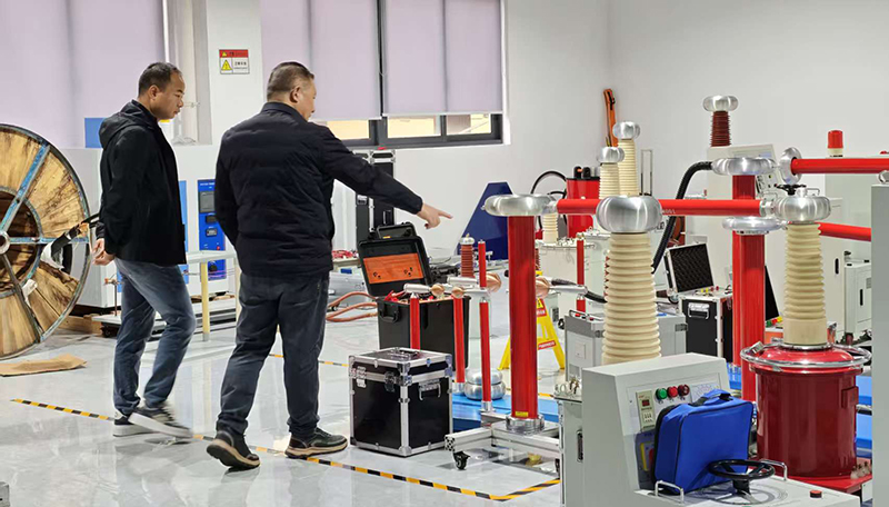 近日武漢凱迪正大電氣有限公司迎來了某電器有限公司的客戶。客戶一行在公司總經理熱情陪同下,先后參觀了公司產品展廳、高壓試驗室,并重點考察了工頻無局放耐壓試驗裝置。